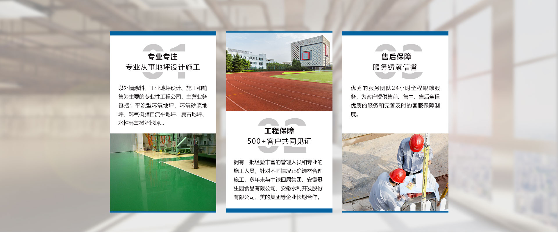 安徽世博裝飾工程有限公司成立于2009年,是一家以外墻涂料、工業(yè)地坪設(shè)計、施工和銷售為主要的專業(yè)性工程公司、是工業(yè)地坪施工的專業(yè)企業(yè)。公司設(shè)立了售后服務(wù)中心,用戶遍布全國大中小城市,一大批具有標(biāo)志性的長期合作伙伴。“世博公司”環(huán)氧地坪工程,受到了越來越多的不同行業(yè)用戶的好評及青睞。公司擁有一批經(jīng)驗(yàn)豐富的管理人員和專業(yè)的施工人員,以保障產(chǎn)品的成功應(yīng)用,用較小的代價獲得理想的效果,尤其在地坪涂裝方面優(yōu)勢突出。而且以好的品質(zhì)管理模式,向客戶提供“獨(dú)具魅力”、“性能優(yōu)異”、“質(zhì)量穩(wěn)定”的產(chǎn)品。公司主要產(chǎn)品包括:平涂型環(huán)氧地坪、環(huán)氧砂漿地坪、環(huán)氧樹脂自流平地坪、滾涂型防靜電地坪、自流平防靜電地坪、復(fù)古地坪、水性環(huán)氧樹脂地坪、彩色透水混凝土地坪、壓花壓模藝術(shù)地坪、金剛砂耐磨硬化地坪、混凝土密封固化劑地坪、乙烯基酯重防腐地坪、GEP 標(biāo)準(zhǔn)型地坪、彈性PU運(yùn)動場地坪、塑膠跑道地坪,PVC橡膠地板、停車場地坪、無震...